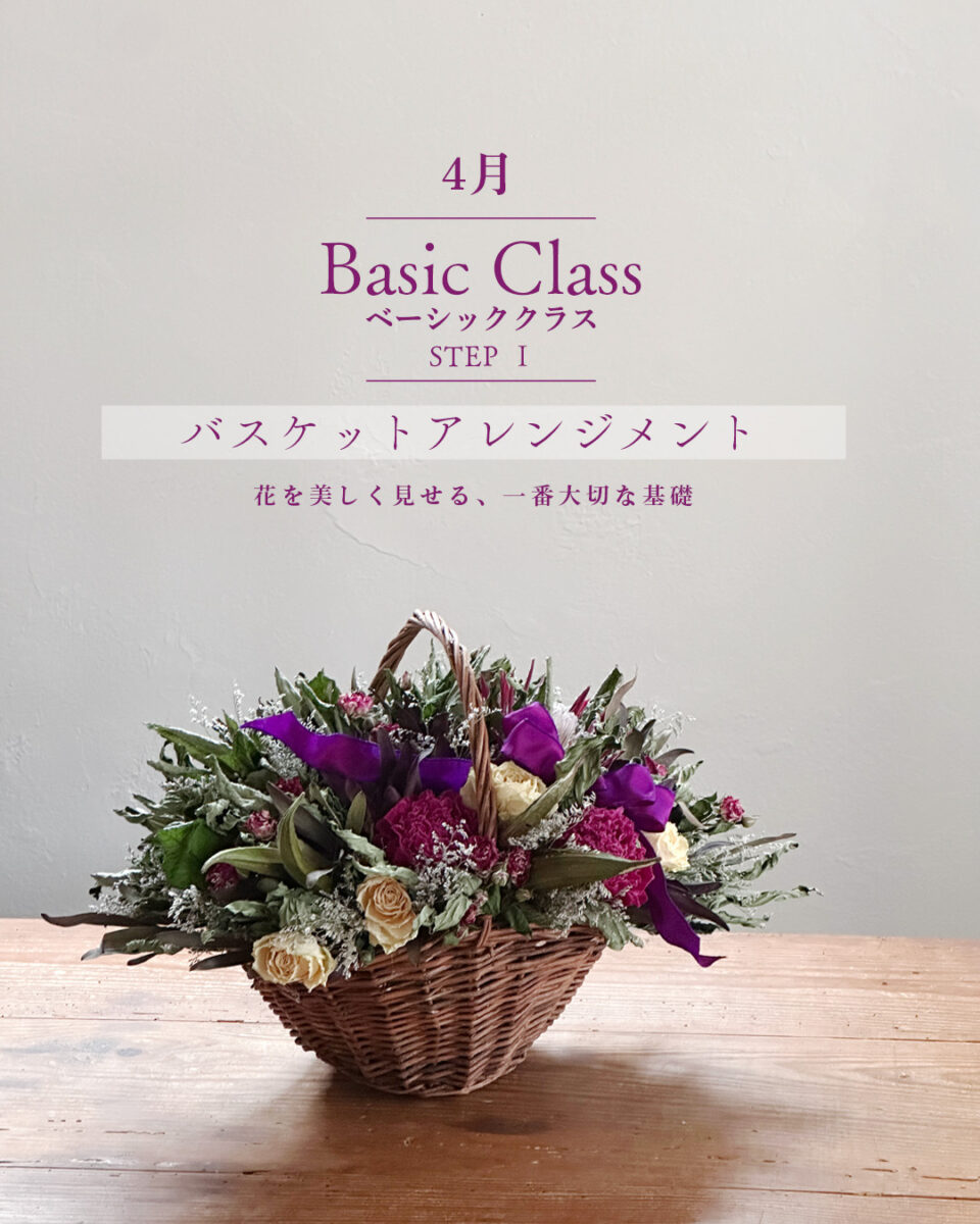 ● ベーシッククラス:技術を学ぶ、バスケットアレンジメント