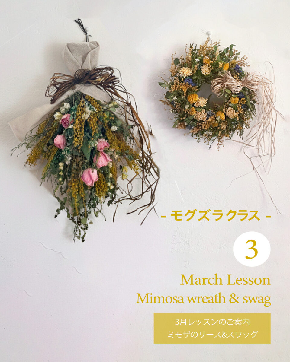 【3月募集】ミモザのリース・スワッグ・トピアリー