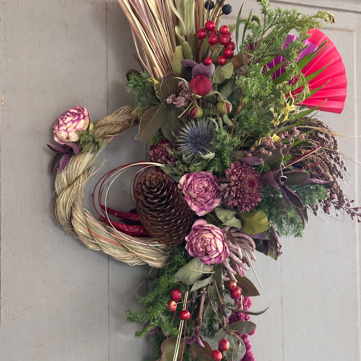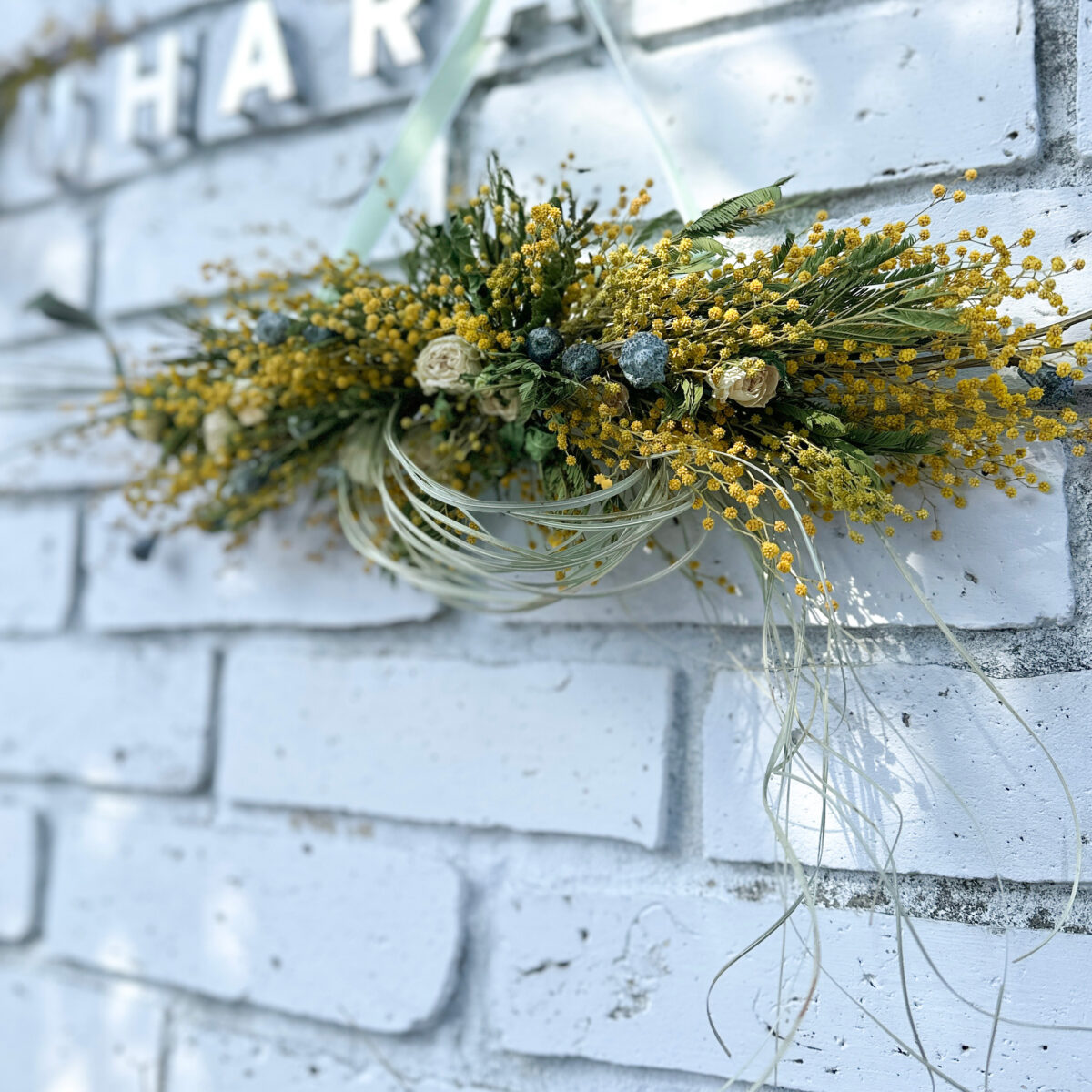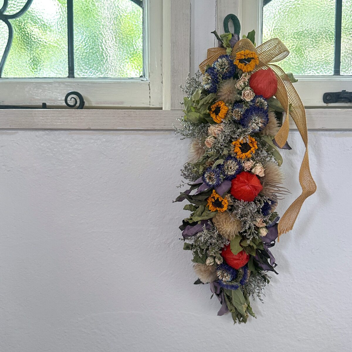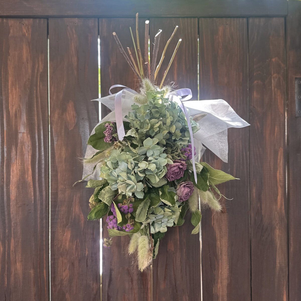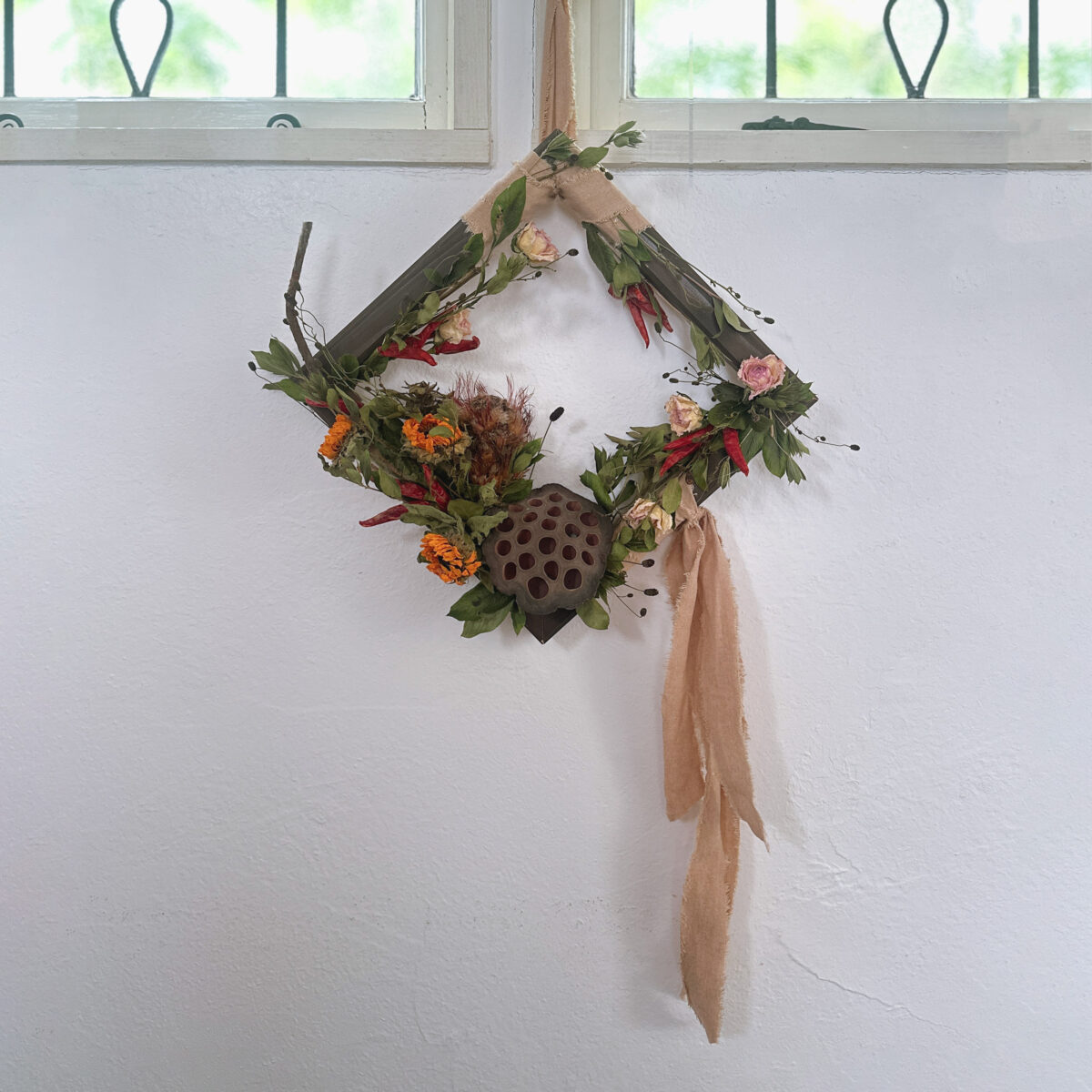 内容: 木製フレームの壁掛けアレンジ