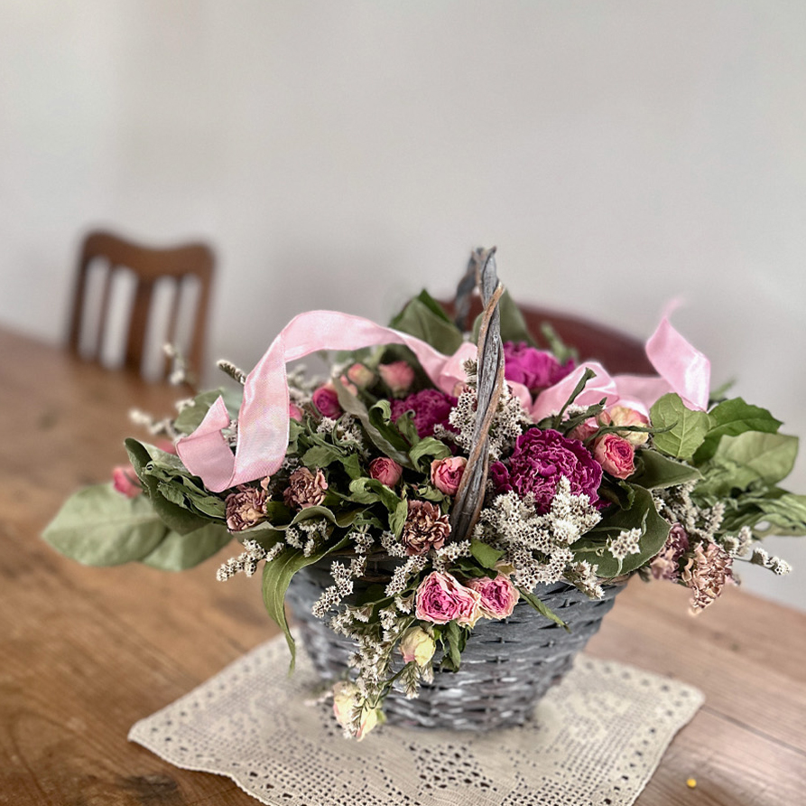 花好きな母の影響もあり、小さな頃から花が好きでした。友人の新築祝いでドライフラワーとの出会いを経験し、その美しさに魅了されました。お花が好きでアンティークが好きな方々に、ドライフラワーの魅力を知っていただきたいと思っています。